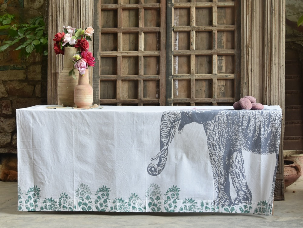 Ekaurr The Majestic March – Elephant Print Table Cover / Curtain