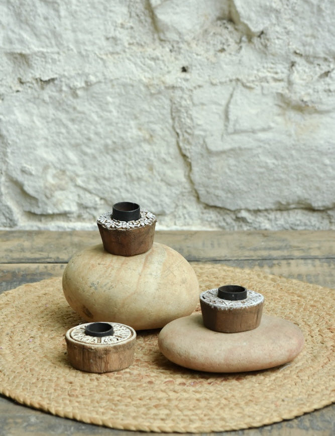 Ekaurr Vintage Print Block Candle Holder (Set of 3)