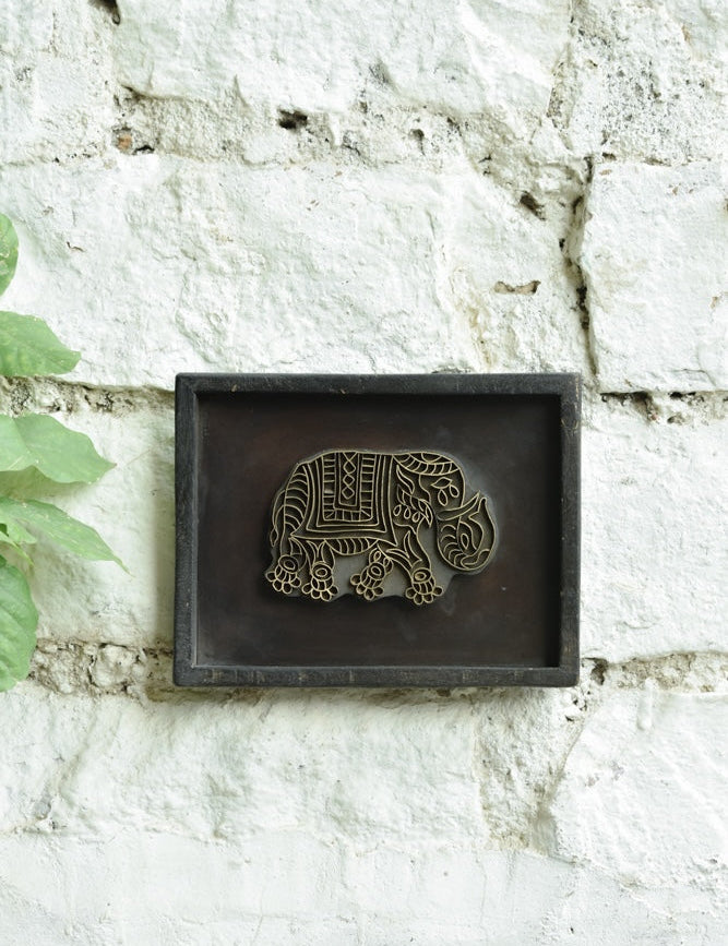 Ekaurr Haathi Impressions – Vintage Brass Print Block Wall Art