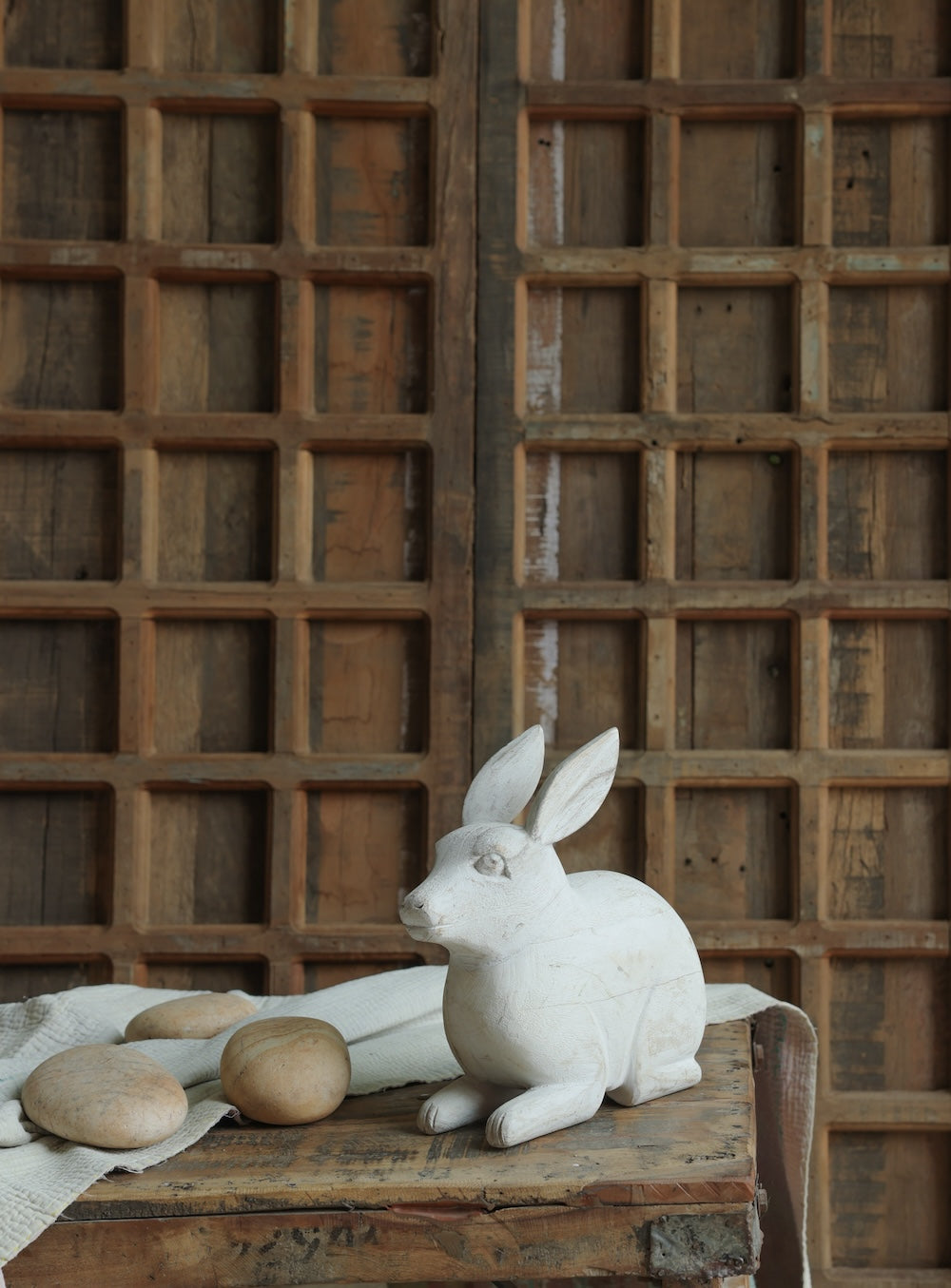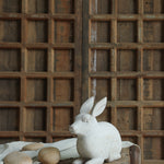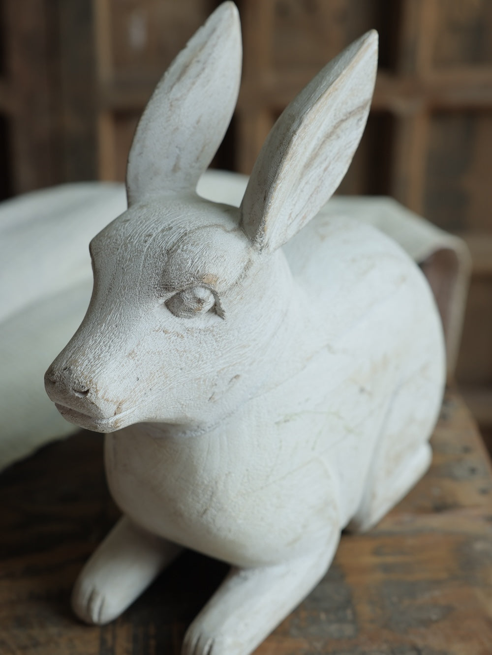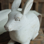 This charming wooden rabbit is crafted from reclaimed wood, enhancing it's aesthetic appeal while promoting sustainability. It's a delightful addition to any living room corner, featuring a beautiful whitewashed finish that highlights the wood's natural grains and preserves it's vintage charm. The presence of cracks and fissures makes each piece unique. This rabbit combines creativity with environmental consciousness, with the history and age of the wood adding to its beauty. Additionally, from a Vastu perspective, rabbit decor is believed to spread positive energy and bring good luck and prosperity.