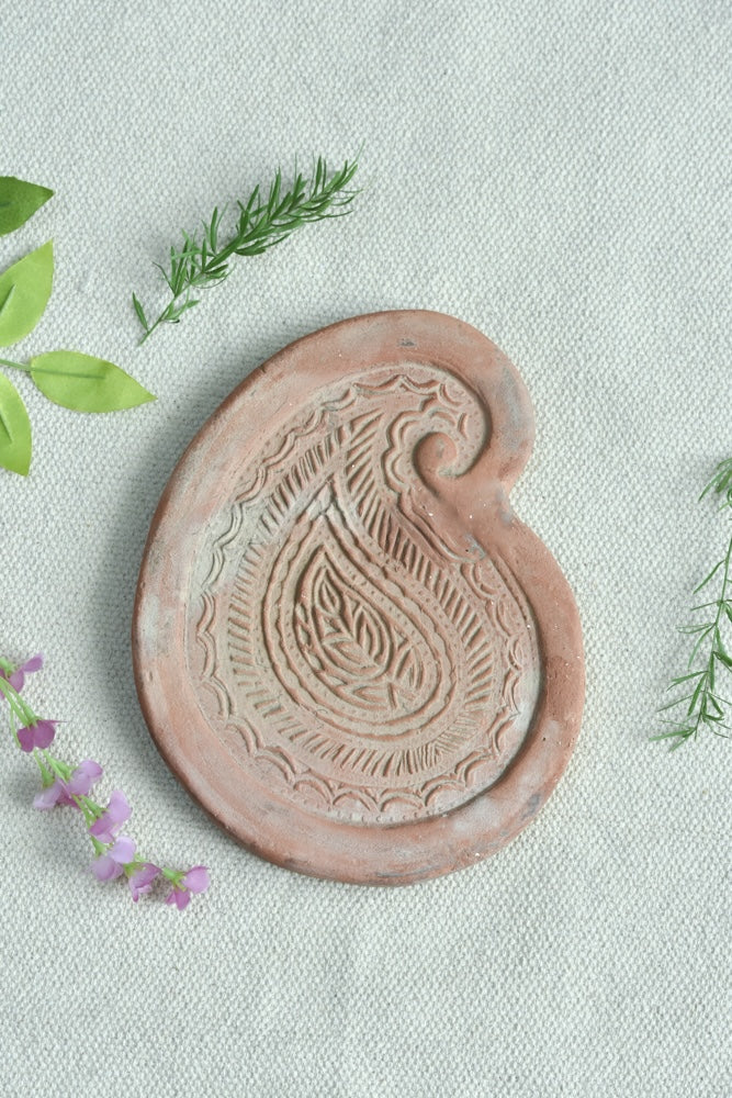 Handcrafted from traditional terracotta, these risers are stamped with age-old wooden printing blocks, preserving generations of artistry in every impression. Delicate florals, paisleys, and geometric motifs are etched into the surface like whispers from the past—stories frozen in clay.