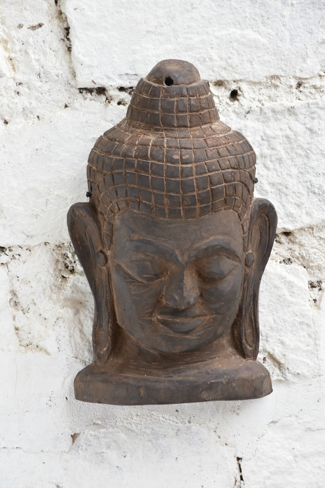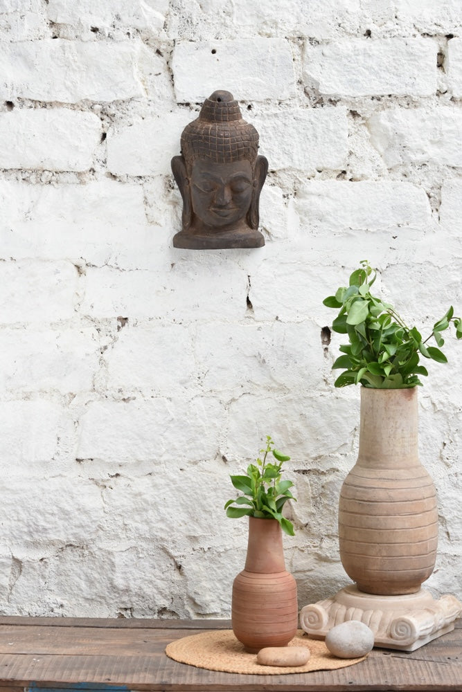 Emanating calm and spiritual stillness, this hand-carved Buddha head wall piece brings peace to any corner it touches. The soft contours, closed eyes, and meditative smile reflect deep craftsmanship rooted in traditional Indian artistry. Made from natural wood, its raw finish adds warmth and grounding energy to your space. Ideal for meditation rooms, entrances, or living walls, it serves as a daily reminder of mindfulness and inner balance. It's a timeless piece for those who seek harmony in art and life.