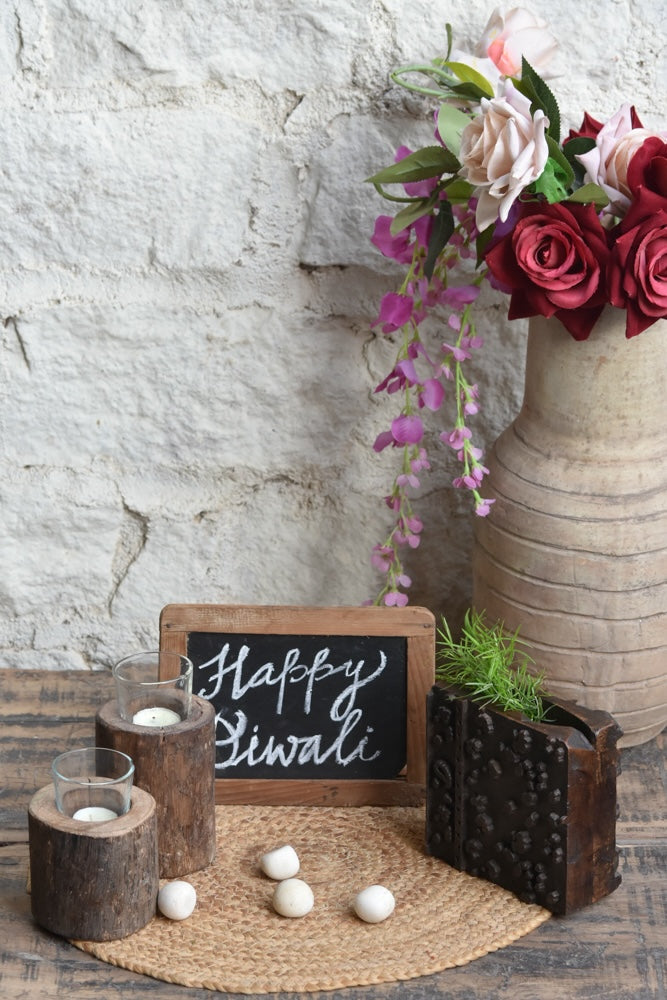 Set of 2 Wooden Tea Light Holders with Glass (S – 3.5 x 3.5 x 4.75 in, L – 3.5 x 3 x 6.5 in, Assorted) – Rustic wooden holders paired with glass inserts, designed to create a warm artisanal glow. Each piece is unique in finish and form.