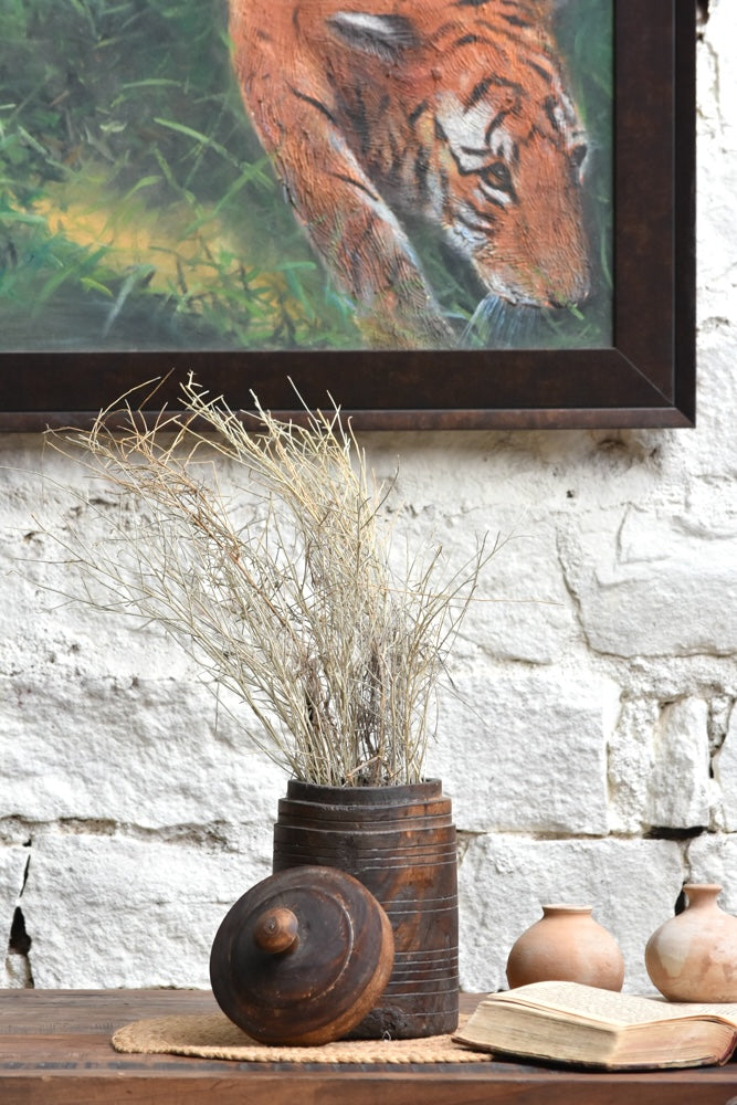 Crafted from reclaimed wood, this rustic jar brings an earthy charm to any setting. Its simple cylindrical form is accentuated with natural grain patterns and subtle ring carvings. The fitted wooden lid adds a vintage character, making it ideal as a decorative accent or a storage piece for dry items or trinkets. Each piece carries the charm of weathered wood, with variations in tone and texture that make it one of a kind.