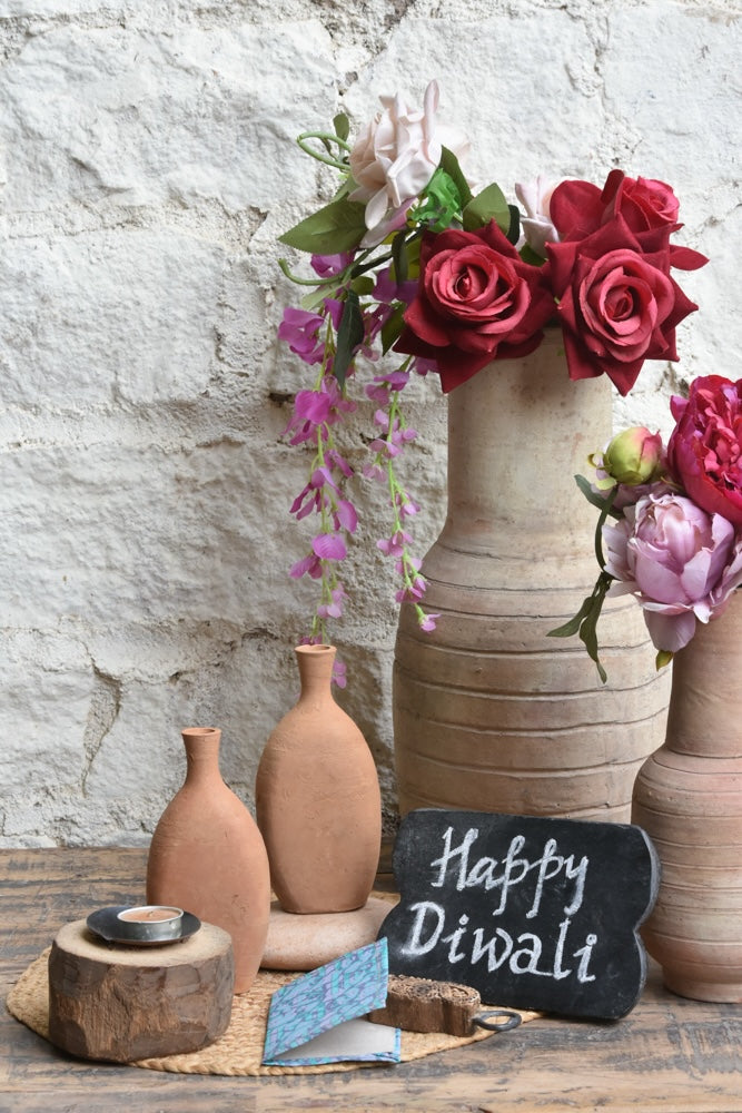 Set of 2 Terracotta Vases (3.25 x 2 x 7.25 in) – Elegant handcrafted vases in earthy terracotta tones, perfect for single stems or standalone décor.