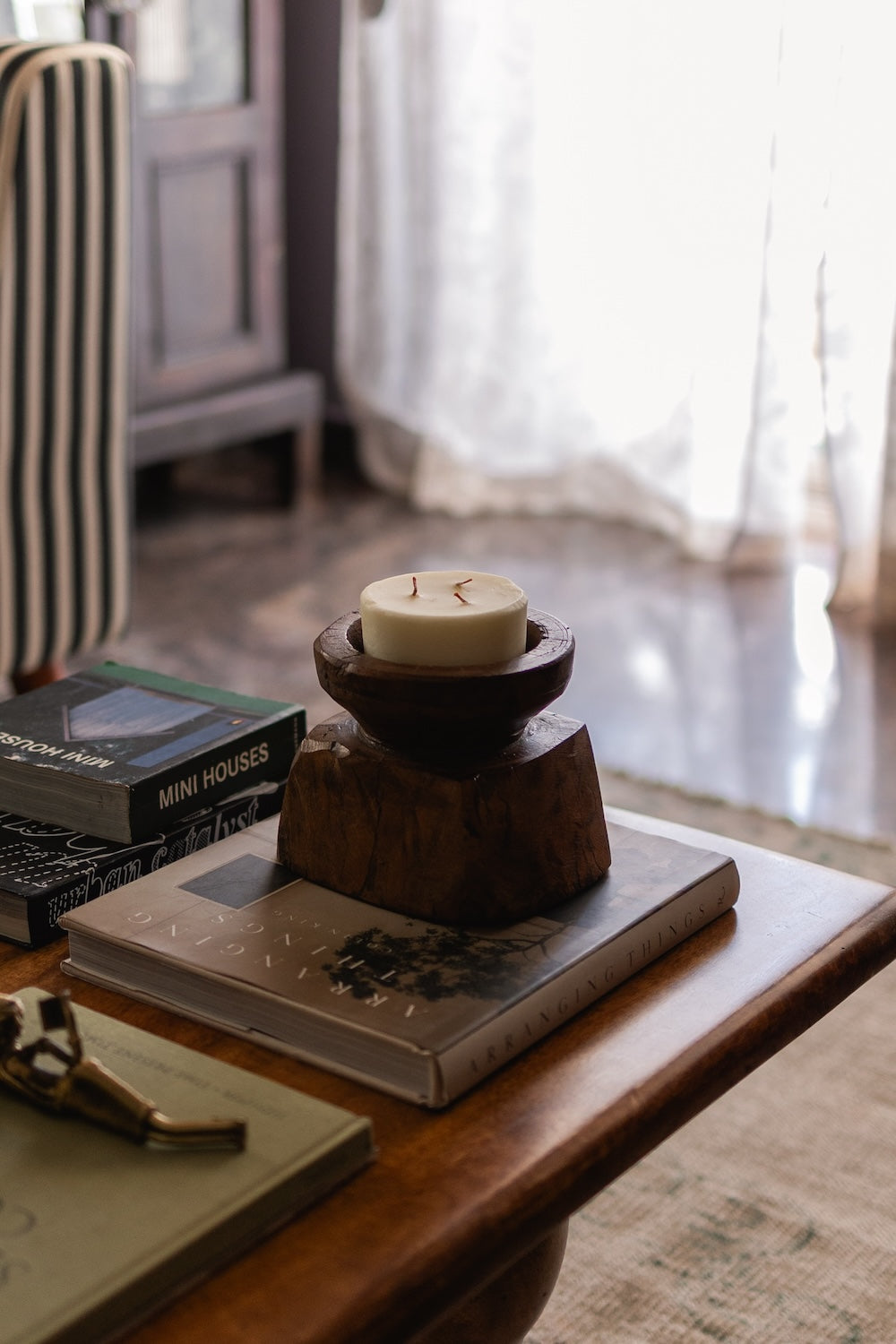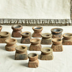 This unique piece of décor is crafted from vintage seed dispensers, known as bijani in India, traditionally used by farmers for sowing seeds. Each bijani features holes through which seeds are distributed into the soil. Handmade and carved from solid wood, these dispensers showcase intricate hand-carved details, adding to their beauty. We also provide iron plates so they can be used as candle holders, which enhances their value and aesthetics. Finished in a natural brown patina, the vintage look is preserved, allowing each piece to tell the rich stories of Indian farmers and narrate a beautiful tale of Indian culture.