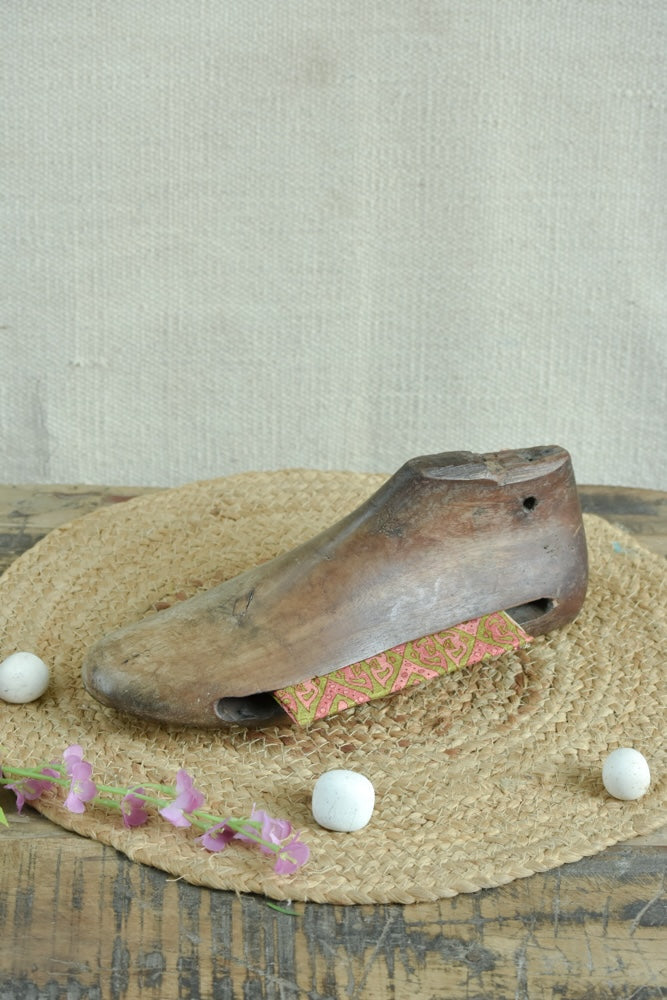 Ekaurr Shoe Mould Paper Organiser – vintage wooden cobbler's shoe mold repurposed as a desktop stationery and paper organiser