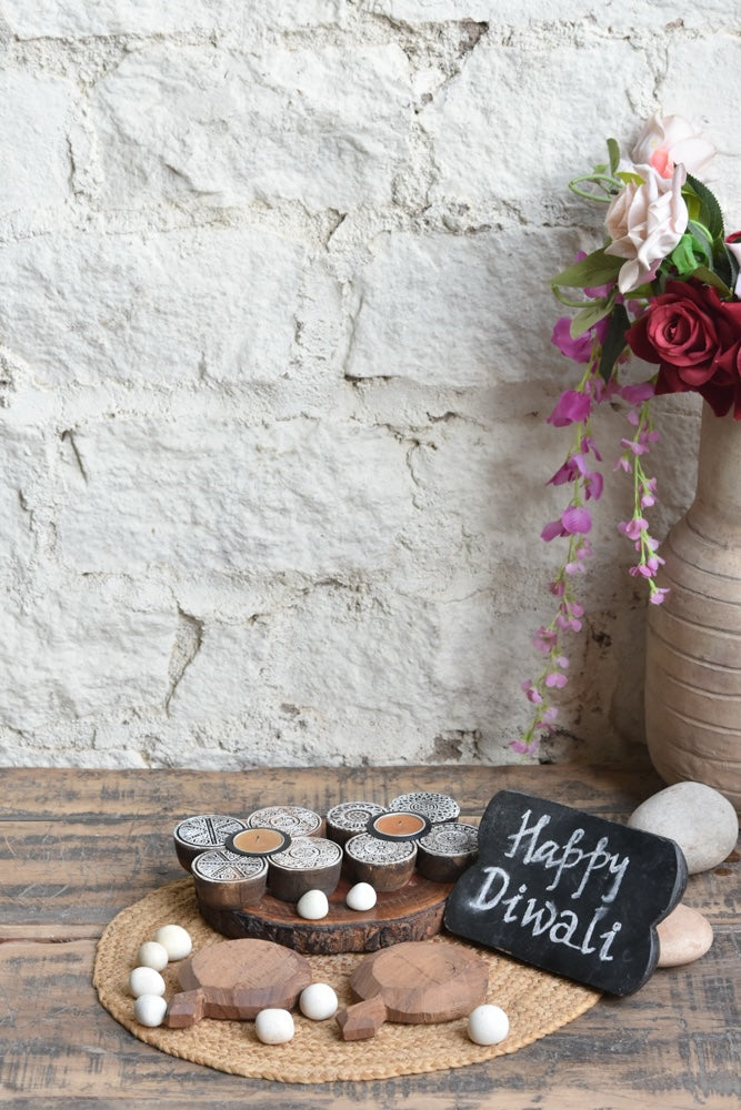 Set of 2 Print Block Tea Light Holders (4.5 x 4.5 x 1.25 in) – Carved from vintage wooden print blocks, each one-of-a-kind with intricate motifs.