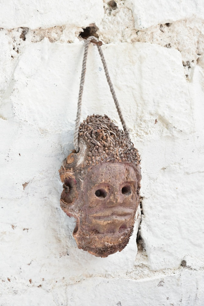 Carved with hollow eyes, a broad nose, and a faintly smiling mouth, this mask carries the haunting yet gentle presence of ancestors remembered in ritual. The textured crown of knots and rough bark-like grain suggests both age and earthiness, as though this face has emerged directly from the soil and roots of the forest. In indigenous traditions, masks like this were often used to honour elders and invoke their wisdom. The expression, at once stern and warm, reflects the dual nature of ancestral spirits: guiding, protecting, and reminding the living of their responsibilities. Handcrafted from seasoned wood, its raw surface bears the scars of time, making each crack and curve part of its story. When displayed on your wall, this mask becomes more than an object it is an echo of memory, a symbol of lineage, and a vessel carrying the voices of those who came before.