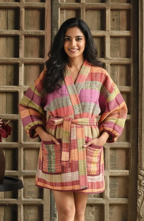 Vintage hand-embroidered, intricate robe. Designed for everyone, this versatile and stylish piece complements any look. At Ekaurr, we embrace the art of upcycling, transforming vintage materials into unique, one-of-a-kind creations.