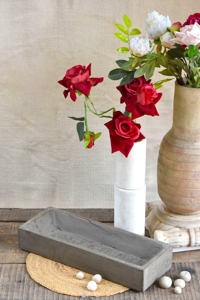 Minimalist in form yet rich in story, this handcrafted rectangular tray recalls the simple utility of moulds once used by artisans. Carved from solid material with a raw, unfinished texture, its shallow depth and rustic surface speak of hands that shaped, pressed, and poured, transforming earth into form. Today, reimagined as décor, it becomes more than a vessel. Use it as a statement centrepiece, a grounding base for candles or flowers, or leave it bare as a celebration of material in its purest state.
