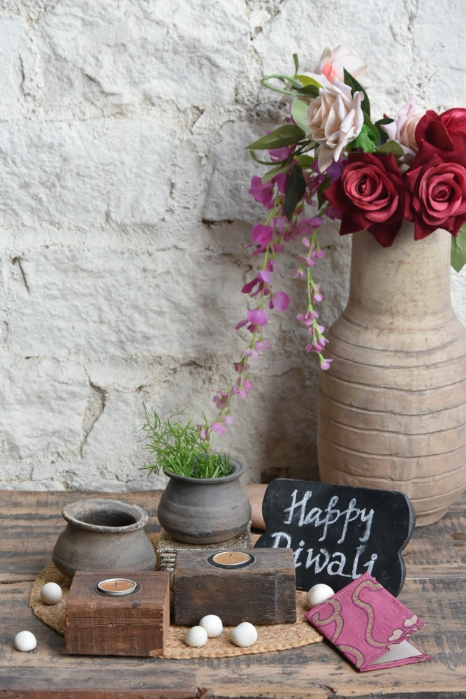 Set of 2 Wooden Tea Light Holders (3-5 x 3-5 x 2-3 in) – Rustic wooden holders designed to add a warm artisanal charm to your festive spaces.