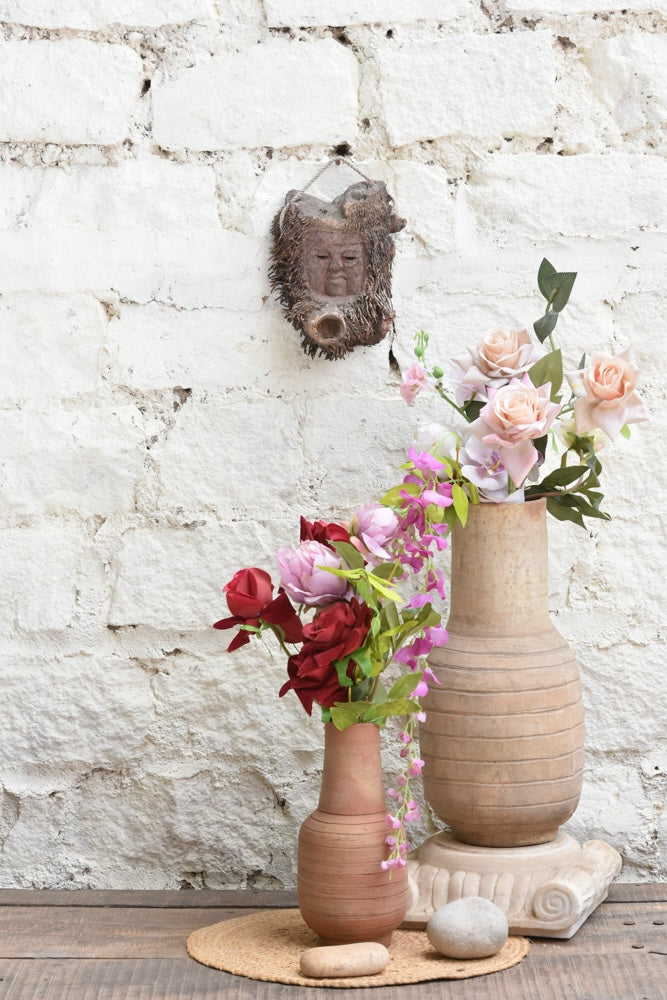 With a serene face framed by coarse textures resembling roots and bark, this mask carries the presence of an elder, a wise ancestor whose spirit bridges the living and the unseen. The carved visage, calm and composed, emerges from a rugged form that suggests earth, forest, and ritual fire, giving it both a human and elemental character. In many indigenous traditions, elder masks represented memory, continuity, and guidance. They were invoked during ceremonies to channel ancestral wisdom and protect the community. The hollowed mouth-like opening at the base hints at voice and breath, as though the mask itself once spoke in chants and invocations. Hand-carved from aged wood and left raw in its natural tones, this mask is a relic of guardianship and storytelling. Hung in a modern space, it becomes more than décor, it becomes a reminder of roots, wisdom, and the eternal dialogue between humans and their ancestors.
