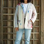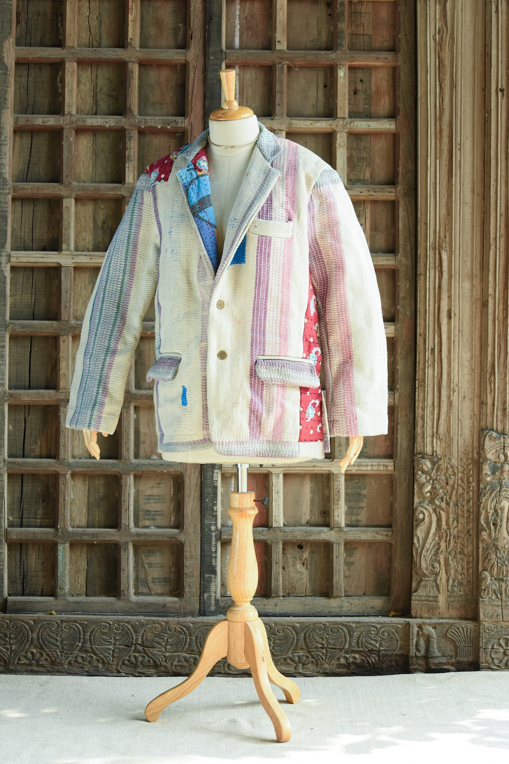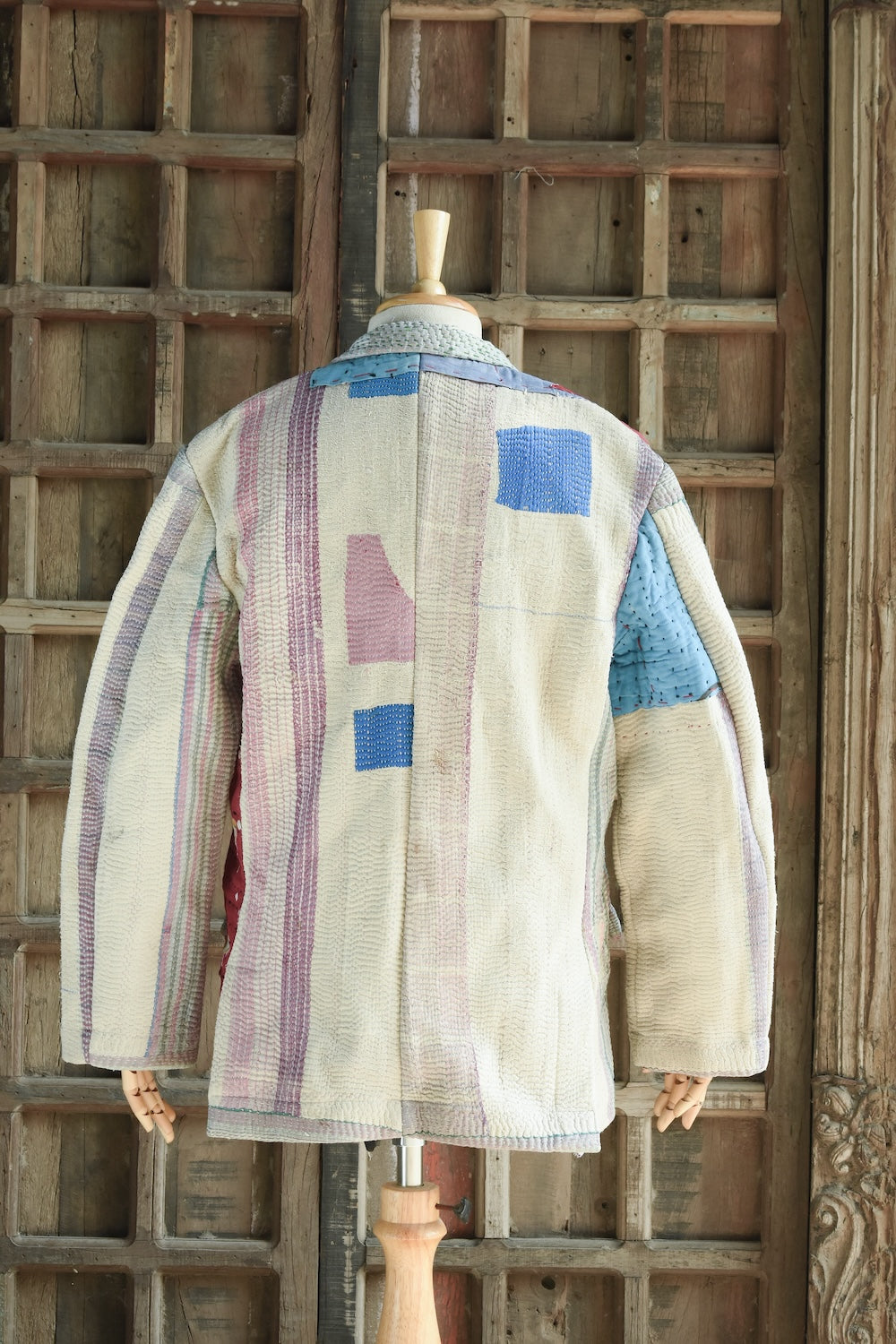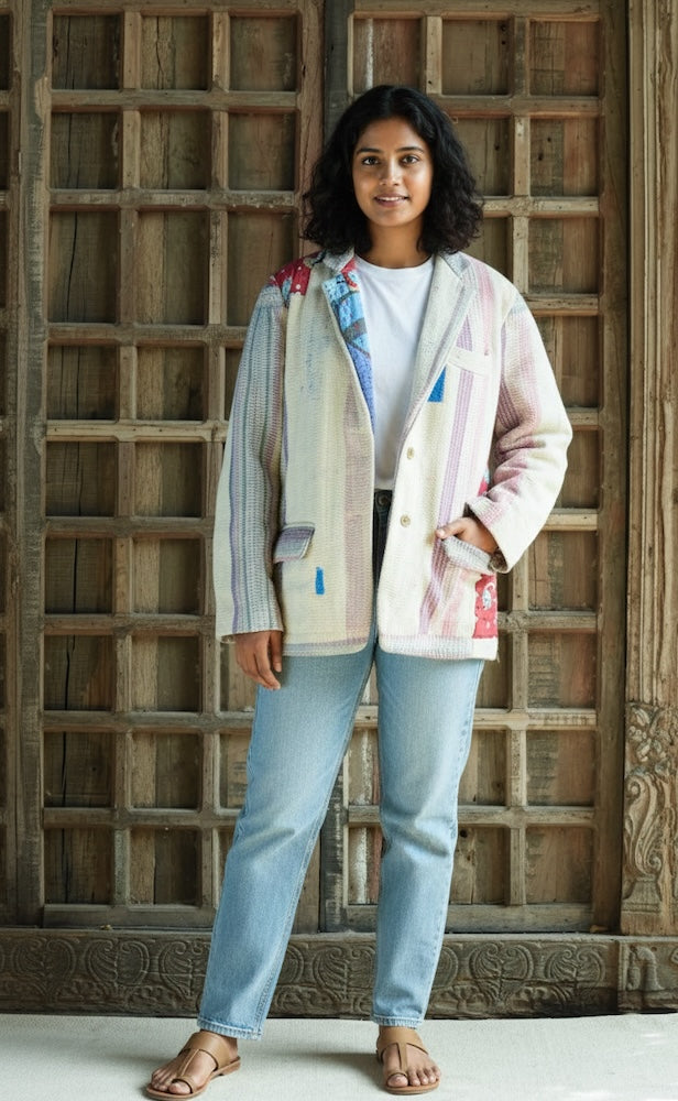 Vintage hand-embroidered kantha blazer. Made for anyone and everyone, this versatile and stylish piece complements any look. At Ekaurr, we embrace the art of upcycling, transforming vintage materials into unique, one-of-a-kind creations.