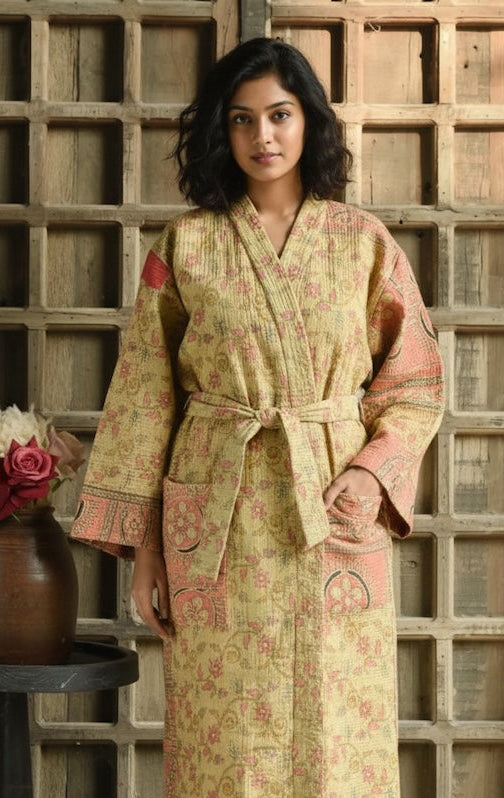 Vintage hand-embroidered, intricate robe. Made for anyone and everyone, this versatile and stylish piece complements any look. At Ekaurr, we embrace the art of upcycling, transforming vintage materials into unique, one-of-a-kind creations.