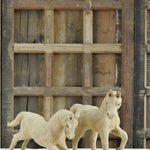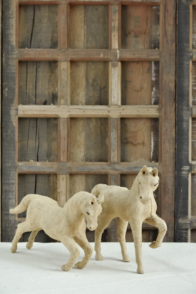 Bursting with movement and raw elegance, this set of two handcrafted horses captures the untamed spirit of the wild. Sculpted in action, one mid-gallop and the other rearing slightly, each horse is wrapped in rustic jute that enhances its texture and grounded appeal. These dynamic poses bring life to any space, whether styled on a console, shelf, or as part of a larger vignette. Crafted by rural artisans, they celebrate motion, freedom, and the beauty of handmade imperfection. It's a striking decor pair for those who appreciate stories in stillness.