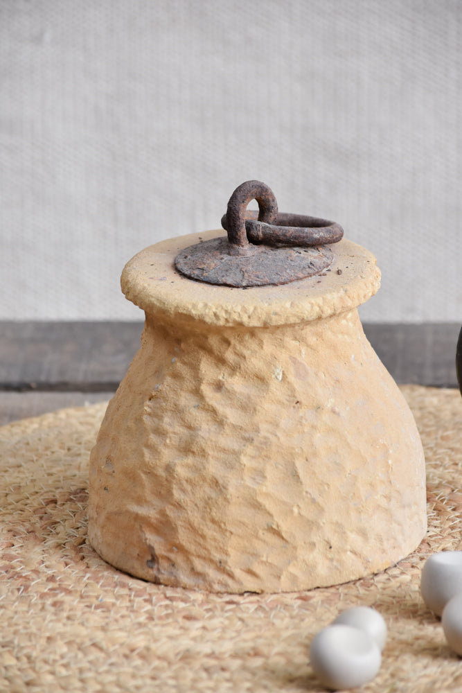 Crafted from solid stone and topped with a weathered metal ring, this door stopper blends raw natural texture with vintage charm. Its sturdy weight makes it both functional and beautifully decorative, grounding any doorway with a touch of artisanal character. The hammered stone surface and aged metal details give it an earthy, old-world appeal that complements rustic, farmhouse, and eclectic interiors. Whether used daily or styled as an accent piece, it adds authenticity and understated elegance to your space. A simple yet striking décor essential.