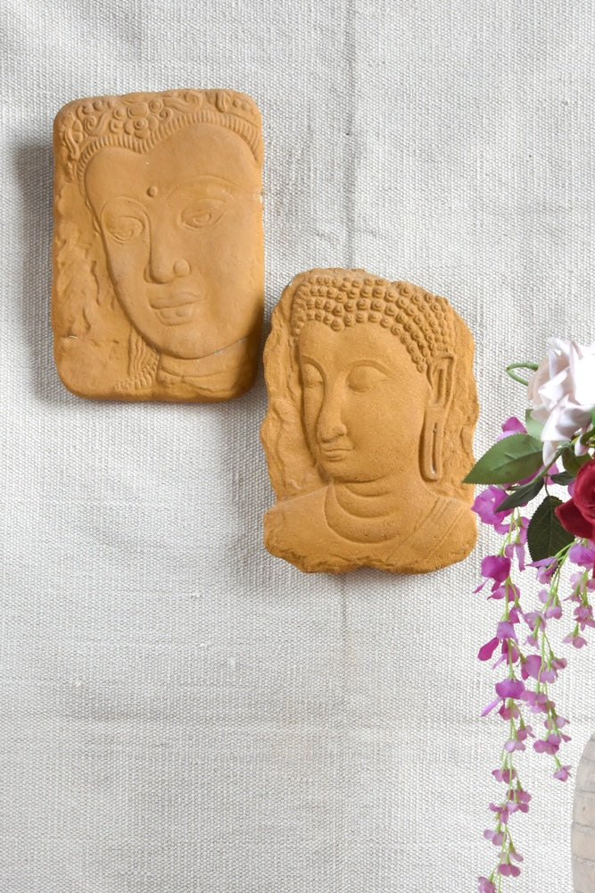 Sacred Calm Plaques are a handcrafted set of two wall decor pieces inspired by timeless spiritual artistry. Featuring serene facial expressions and softly sculpted details, these plaques evoke mindfulness, balance, and inner peace. The warm, earthy tones and gently weathered finish give them an ancient, meditative character, making them ideal for tranquil corners, meditation spaces, or thoughtfully styled walls. Each plaque reflects artisanal craftsmanship and quiet symbolism, bringing a sense of grounded calm and soulful depth to any interior.