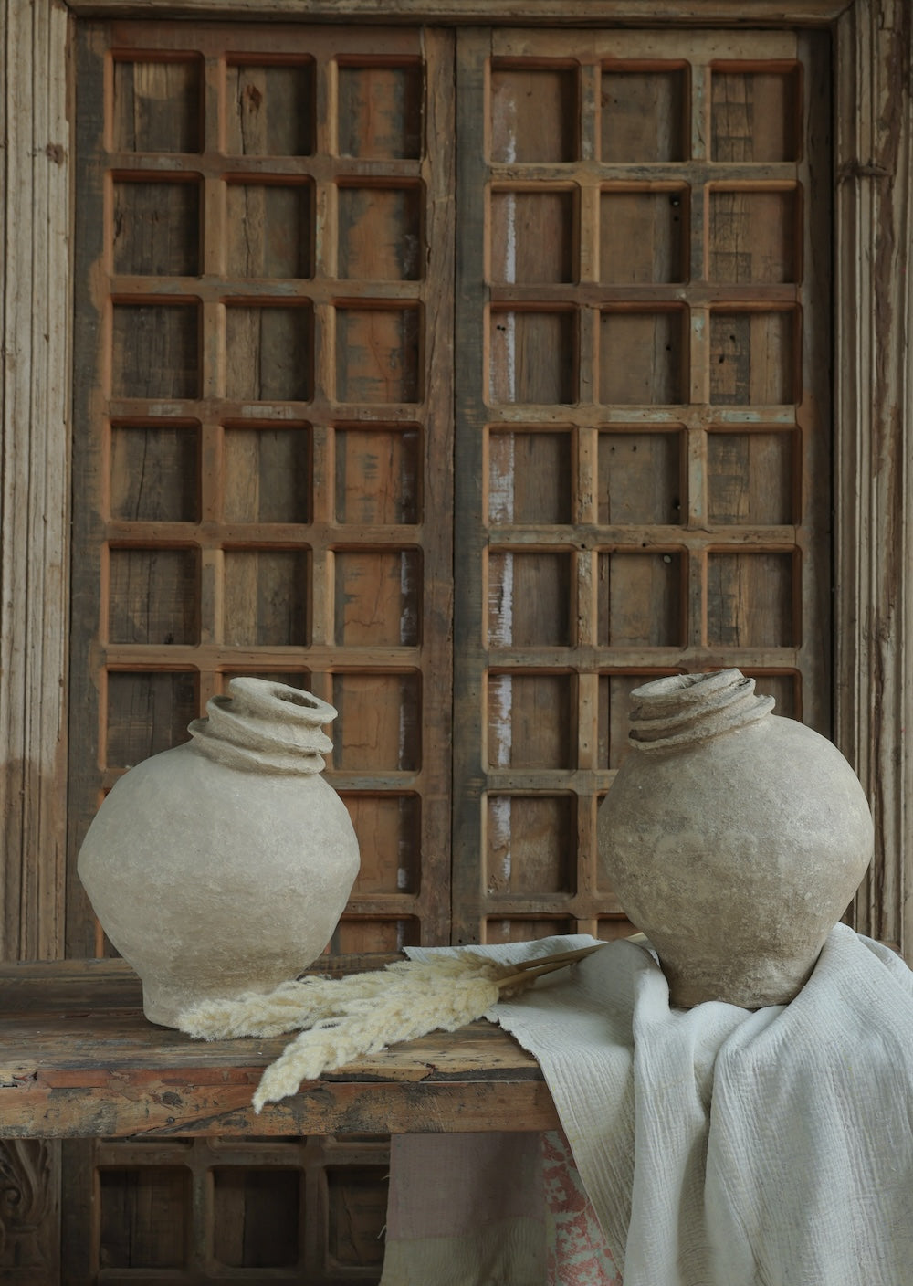 Ekaurr Set of 2 Paper Mache Dancing Pots in Earthy Finish
